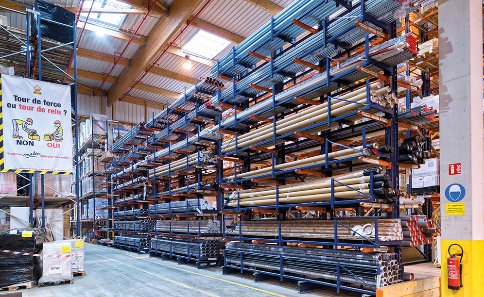 Mecalux et l’équipe technique de Saint-Gobain ont développé un modèle-type d’entrepôt qui s’adapte à tous les centres de distribution de l'entreprise en France. La solution prévoit de combiner des rayonnages à palettes, des rayonnages cantilever et différentes solutions de picking.